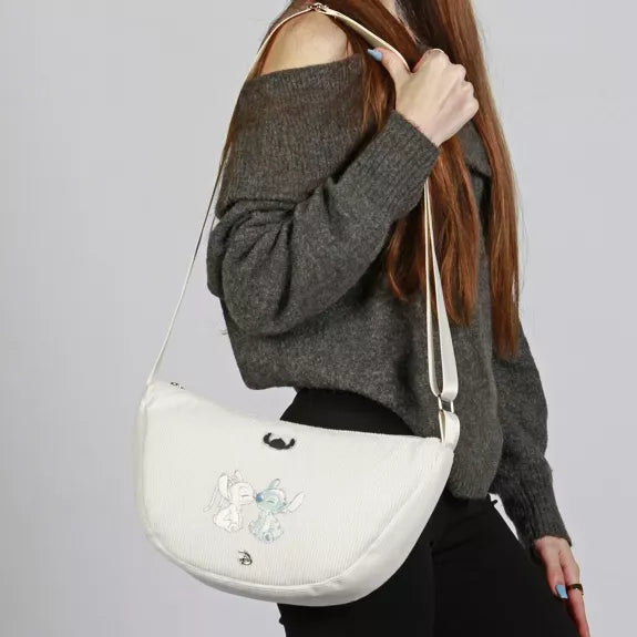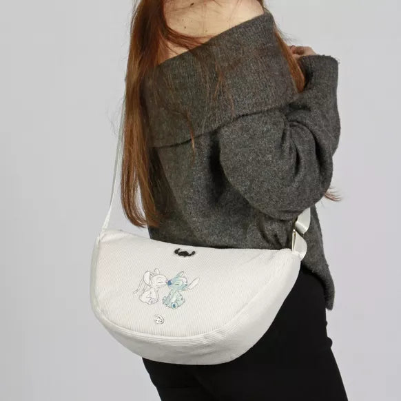 Craquez pour ce sac bandoulière Stitch en velours côtelé, aussi adorable que pratique pour vous accompagner au quotidien !
